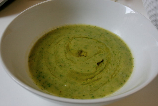 Using a large soup pot, heat the olive oil over medium heat and stir in the garlic, onion, and ginger to season the oil. Add the vegetables and stir a bit until the spinach and kale wilts and collapses. Add just enough water to cover the vegetables.