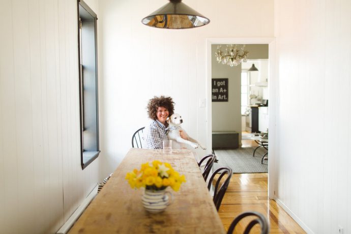 When we have people over, I like to do stuff that you can make as much ahead of time. Our kitchen doesn’t have much counter space, or a dishwasher, so that influences what I cook. It sounds crazy, but I just don’t want to do dishes! It also depends on who we are having over. My brother and his wife are really healthy, they are both vegetarians, and my sister in law has a number of food allergies. When they come over, I make a variation of the same meal. Some sort of potato, or sweet potato, a version of kale, because the two of them practically have IV drips of kale they eat so much of it, and some kind of grain like quinoa to make it more substantial. I also like to make chopped salad with lots of stuff. I think anyone that has a lot of limitation with what they can eat usually end up eating the same thing over and over, so I like to make it a little special. I’ll make roasted potatoes but I’ll stir them together a mixture of garlic, parsley and dill and it makes all the difference. I like to make sure whatever I am making, that everyone at dinner can eat everything on the table. When you are always the exception to a group of people eating, it’s nice to be included. We do a lot of small dinners even though we have a big long table. It’s a nice relaxing way to be at home. I’ve spent a lot of my career in restaurants, and moving around a lot, so I like to be at home as much as possible.