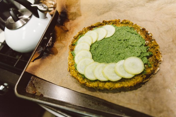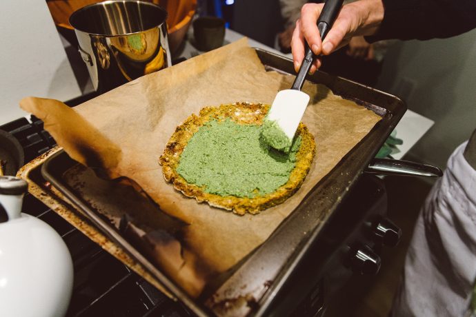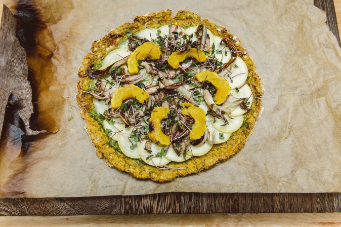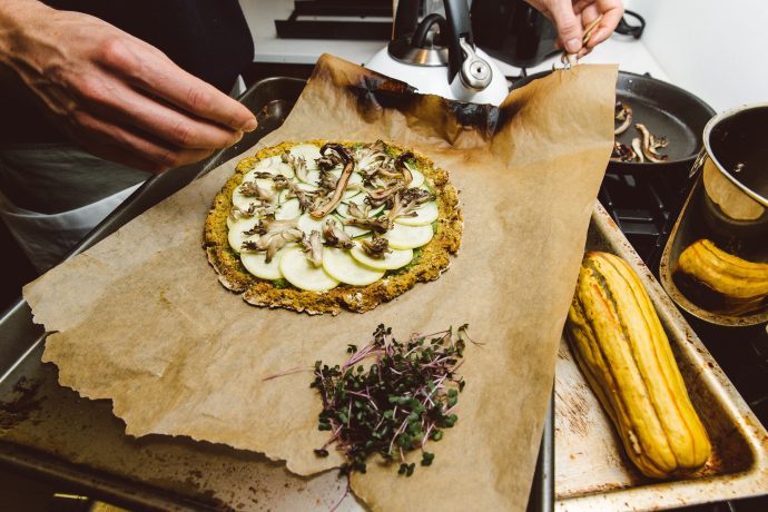 “LIVING IN NEW YORK, THERE IS SUCH GREAT FOOD, BUT THERE ARE NO CALI VIBES,” muses plant-based chef Adam Kenworthy from his sun-drenched apartment in Manhattan. “I think there is room for improvement here.” To wit, Kenworthy has taken up the mission to bring West Coast vibed food (read: plants, plants and more plants) to his own kitchen and to those of his lucky clients. Just take a gander at his Instagram feed, which features inspired vegan dishes like maitake mushroom and squash tacos, his signature “sexy salads” that rival works of art and mouth-watering pizzas with crusts whipped out of cauliflower and oats–the latter, which girlfriend Carole Radziwell has publicly gushed over. Below, the former extreme sports enthusiast-turned-model-turned-culinary pro talks flexitarianism, moving meditation and his daily midnight indulgence.