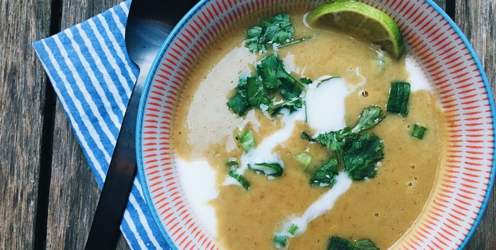 1 large head of cauliflower 1 large yellow onion, chopped 2 cloves garlic, chopped 1 inch knob of fresh ginger, grated 2 limes 3.5 cups of water or vegetable broth 1/2 cup of coconut cream (or the cream skimmed off the top of a can of full-fat coconut milk) 1 tablespoon of curry powder or … Continue reading COCONUT CURRIED CAULIFLOWER SOUP